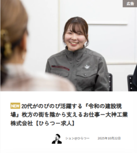 先日、地域メディア「枚方つーしん」様に、弊社で活躍する若手社員のインタビュー記事が掲載されました!
