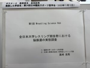 本展示では、大学レスリングにおける医学的アプローチに基づいた研究成果を公開。白熱した試合が繰り広げられる中、競技関係者のみならず、多くの一般来場者の方々にも足を止めていただき、スポーツ科学への関心の高さが伺える機会となりました。