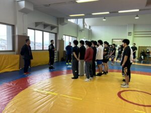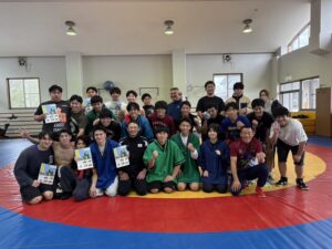 当社レスリング部所属で、かつてはベルトレスリングの日本代表も務めた黒崎 辰馬が、母校の福岡大学にてベルトレスリングの普及活動を行いました。