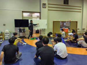 近隣の大学生、高校生も交えてルールや実技指導を行ったほか、指導後には交流の場を設け、大神工業の魅力や仕事のやりがいについても紹介。スポーツと仕事を両立できる環境を伝え、求人活動も併せて実施いたしました。