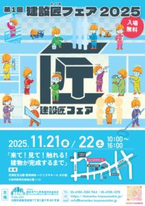 去る11月21日と22日の二日間、鶴見緑地ハナミズキホールにて開催されました「第1回建設匠フェア2025」に参加いたしました。
